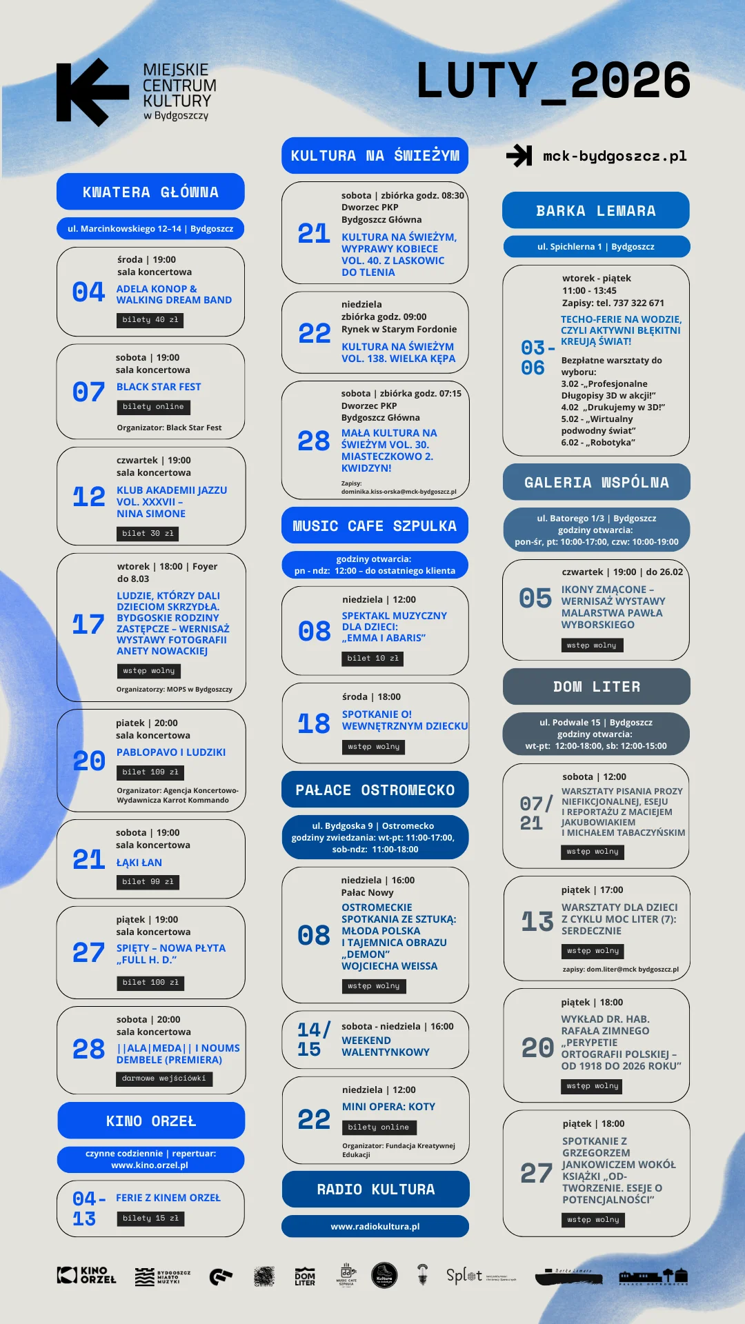 Zapraszamy do zapoznania się z programem wydarzeń Miejskiego Centrum Kultury w Bydgoszczy na luty 2026 – sprawdź, co przygotowaliśmy!
