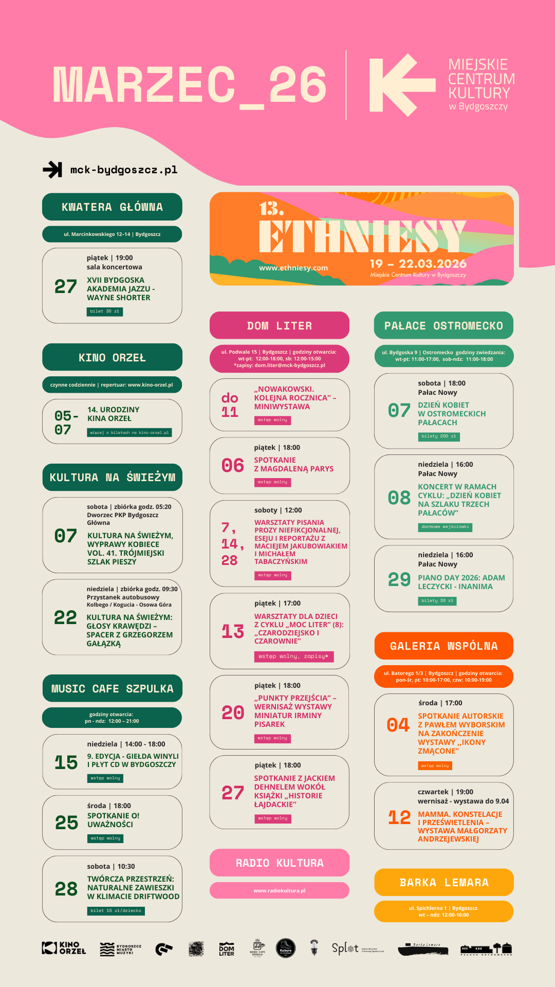 Zapraszamy do zapoznania się z programem wydarzeń Miejskiego Centrum Kultury w Bydgoszczy na marzec 2026 – sprawdź, co przygotowaliśmy!