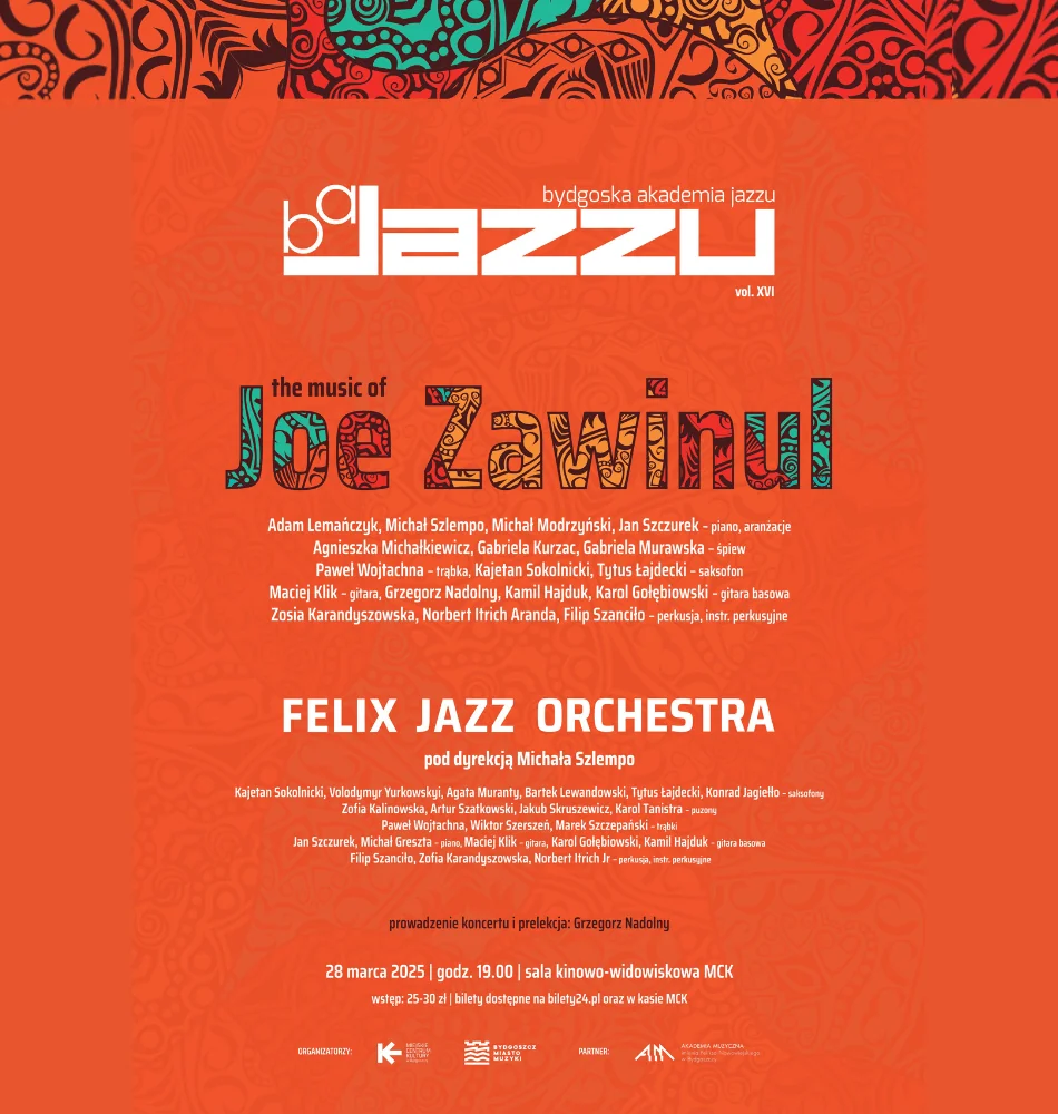 Joe Zawinul (1932–2007) był austriackim pianistą, kompozytorem i pionierem muzyki jazzowej, znanym przede wszystkim z wprowadzenia instrumentów elektronicznych do jazzu. Zawinul współpracował m.in z takimi legendami jazzu jak Miles Davis, przyczyniając się do powstania albumu „In a Silent Way” i rozwoju stylu fusion w jazzie. Był również współzałożycielem zespołu Weather Report, jednej z najważniejszych grup fusion lat 70. i 80. Jego charakterystyczne brzmienie, łączące jazz z elementami funk, world music i elektroniki, miało ogromny wpływ na rozwój współczesnej muzyki. W dwuczęściowym koncercie jego twórczość zostanie przedstawiona w autorskich aranżacjach na różnorodne składy instrumentalne oraz Big Band – Felix Jazz Orchestra pod dyrekcją Michała Szlempo. Postać bohatera koncertu w krótkim wykładzie przybliży autor cyklu Grzegorz Nadolny.