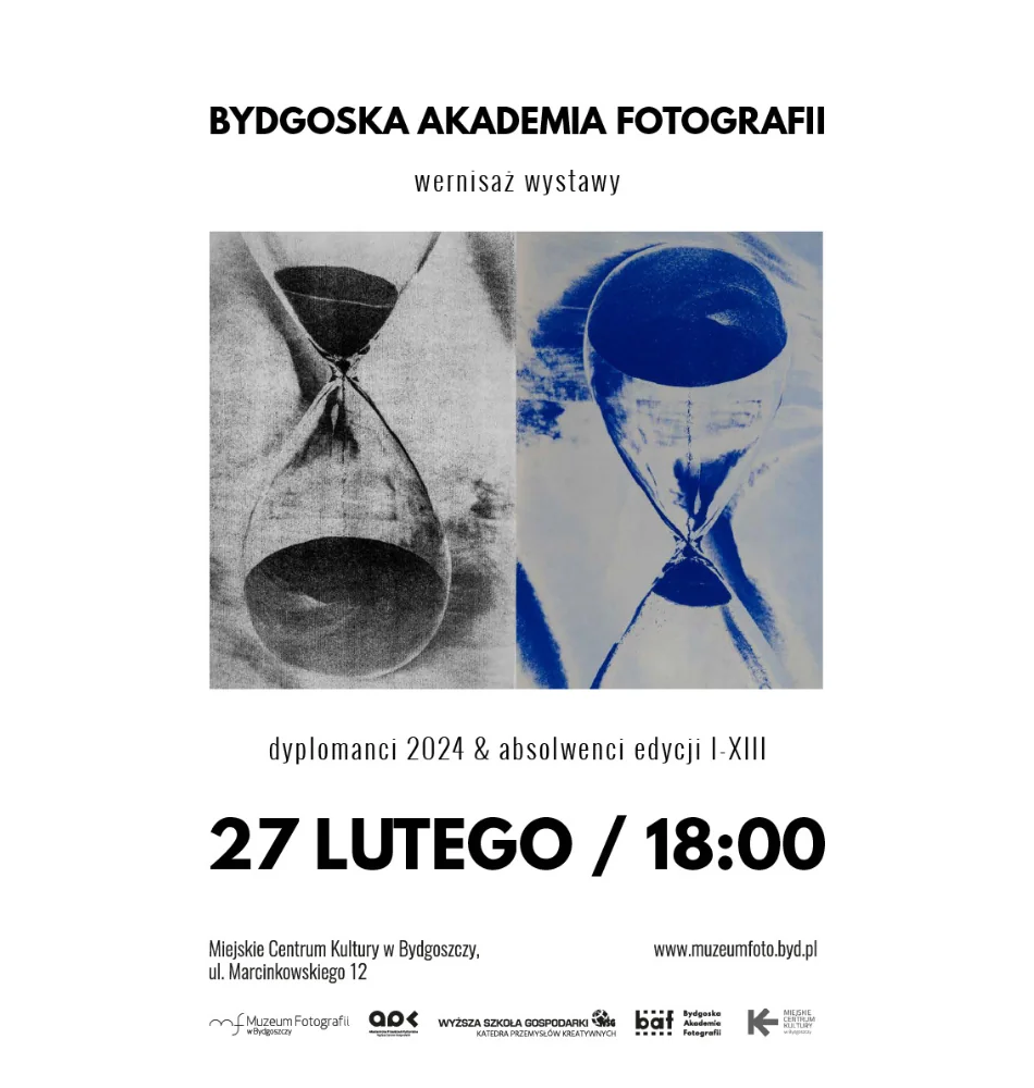 Muzeum Fotografii w Bydgoszczy oraz Miejskie Centrum Kultury zapraszają na wernisaż wystawy jubileuszowej absolwentów Bydgoskiej Akademii Fotografii 2014 – 2024.