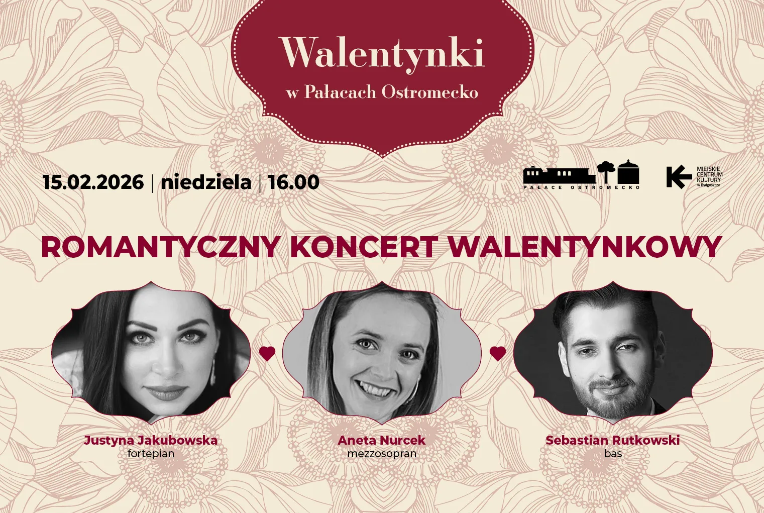 W niedzielę, 15 lutego 2026 roku w Pałac w Ostromecku będzie muzycznym ukłonem w stronę Walentynek – pełnym uroku, lekkości i dobrego nastroju. Trzech niezwykle utalentowanych muzyków: Justyna Jakubowska, Aneta Nurcek i Sebastian Rutkowski zaprezentują repertuar łatwy w odbiorze i przyjemny dla ucha, idealny na zimowy, romantyczny wieczór. W programie znajdą się najpiękniejsze arie i duety ze znanych operetek, a także popularne melodie musicalowe – muzyka pełna wdzięku, emocji i uśmiechu. To koncert, który nie wymaga „muzycznego przygotowania” – wystarczy dać się ponieść nastrojowi i czerpać czystą przyjemność ze słuchania.