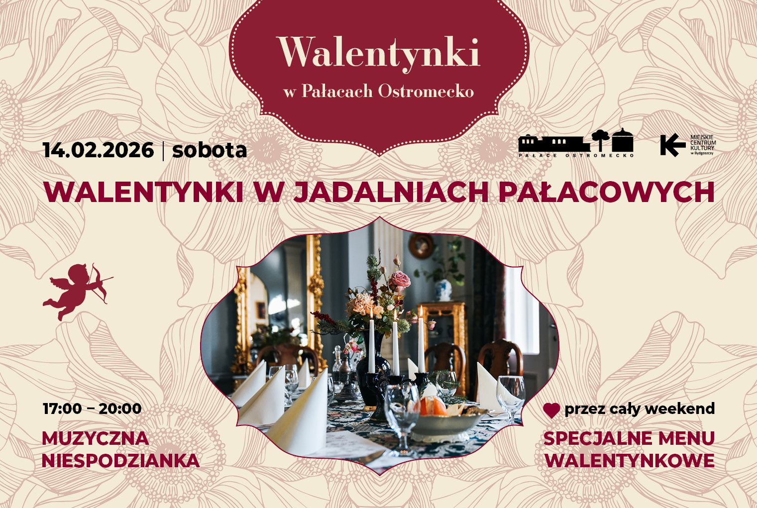 Wyjątkowo 14 lutego Jadalnie Pałacowe będą czynne dla Państwa do godz. 22.00.