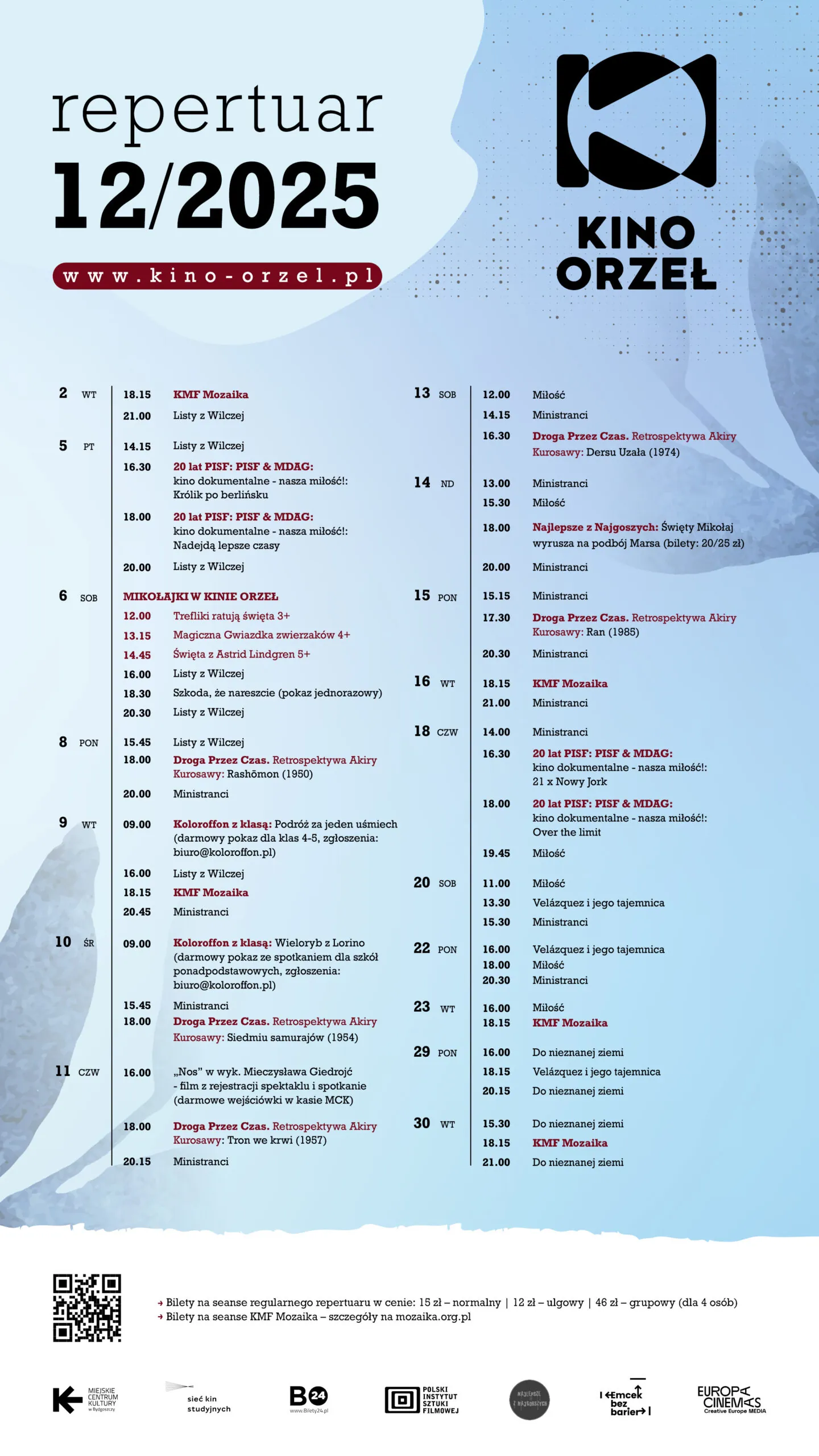 Zapraszamy do zapoznania się z repertuarem Kina Orzeł na grudzień 2025 – sprawdź, co przygotowaliśmy!