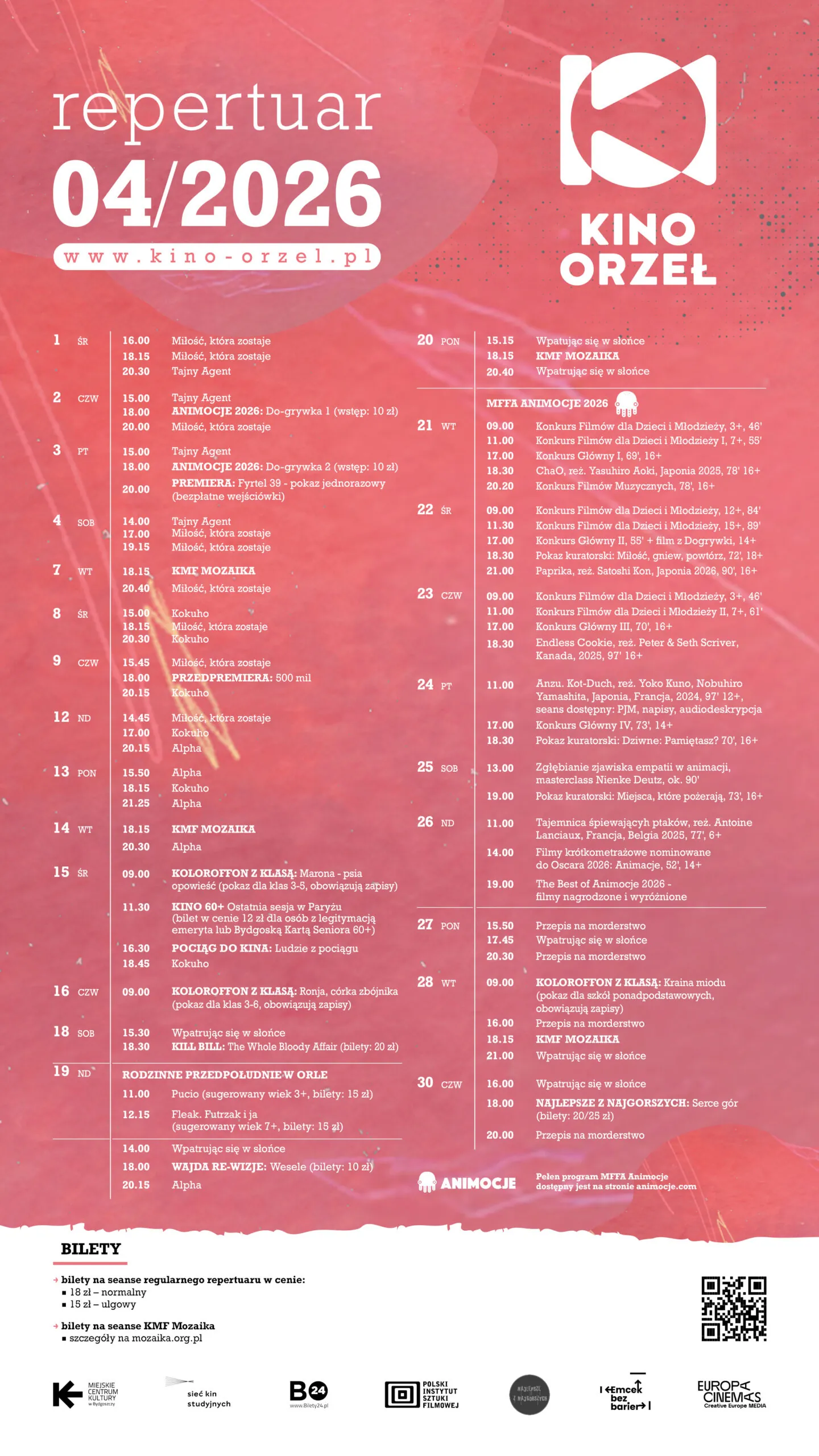 - 19.00 ANIMOCJE – The Best of Animocje 2026 – filmy nagrodzone i wyróżnione