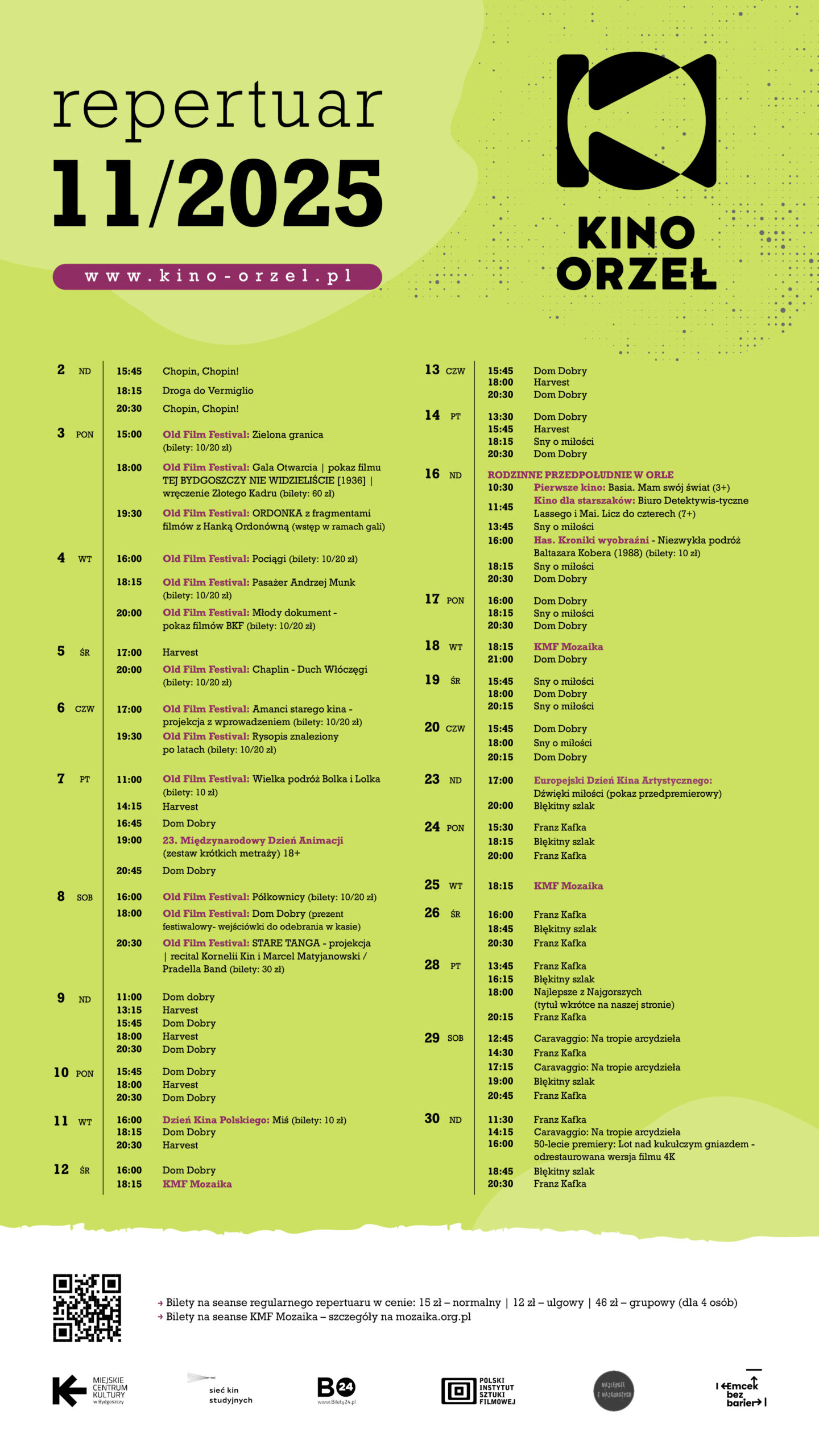Zapraszamy do zapoznania się z repertuarem Kina Orzeł na listopad 2025 – sprawdź, co przygotowaliśmy!